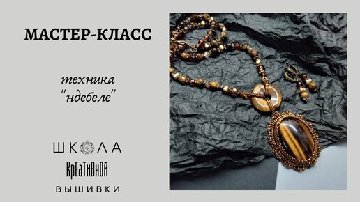 Плетение в технике _ндебеле_ на 2 и 4 бисерины + обзор кулона из тигрового глаза. Ссылки материалы.