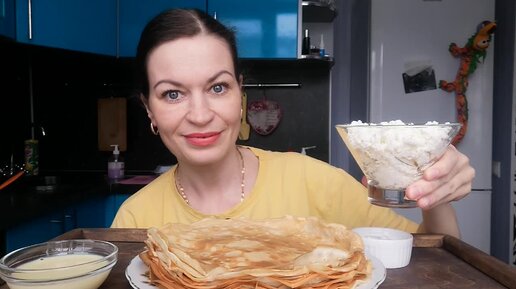 МУКБАНГ БЛИНЫ! С ТВОРОГОМ, СГУЩЕНКОЙ И СМЕТАНОЙ/MUKBANG HALK FAMILY ЕДА