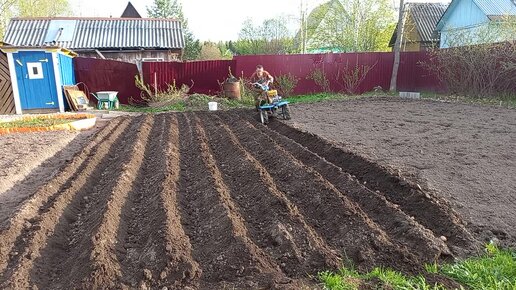 ПОСАДКА КАРТОФЕЛЯ ПОД МОТОБЛОК ,ПЕРЕДЕЛАННЫМ ПЛУГОМ.PLANTING POTATOES UNDER A TILLERBLOCK, A CONVERTED PLOW.