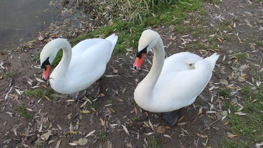 Гуси-лебеди пришли "обилечивать" рыбака.