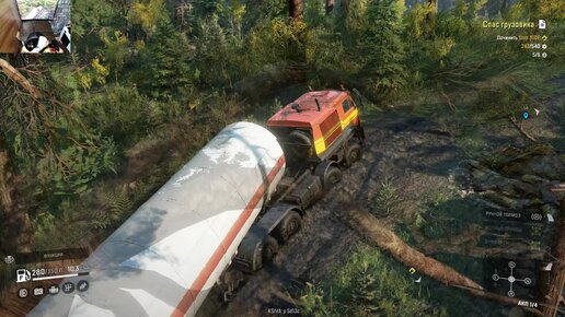 Тяну цистерну по сложной дороге (SnowRunner)