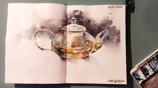 Чайник акварелью. Простые обучалки. День 3