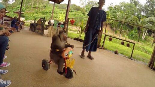 Обезьяна катается на велосипеде - как дрессируют обезьян в Таиланде и зачем