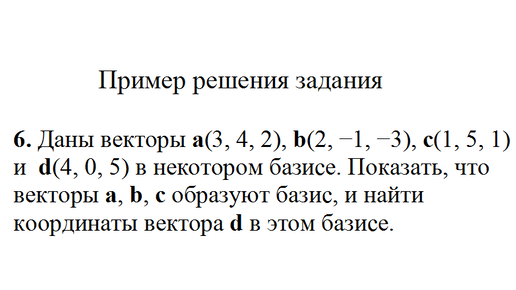 Показать, что векторы a(3, 4, 2), b(2, −1, −3), c(1, 5, 1) образуют базис, и найти координаты вектора d(4, 0, 5) в этом базисе. пример 6.