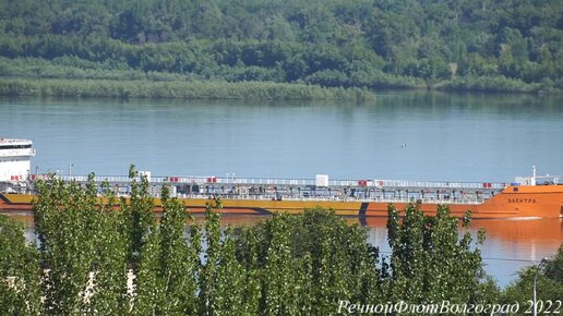 Теплоход Электра идет вниз по Волге мимо Волгограда