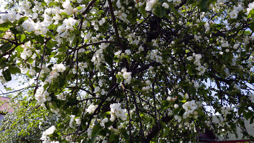 Цветущая яблоня в деревне Летний щебет птиц Жужжание пчёл