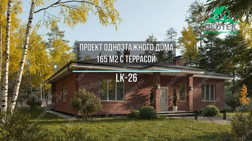 Проект квадратного одноэтажного дома 165 м2 с террасой - LK-26