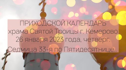 ПРИХОДСКОЙ КАЛЕНДАРЬ. 26 января 2023 года, четверг. Седмица 33-я по Пятидесятнице.