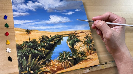 Рисуем Оазис в пустыне. Мастер-класс по Живописи акрилом. Картина на холсте