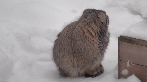 Манул Зеленогорск изучает вольер в который его переселили. 28.01.2023