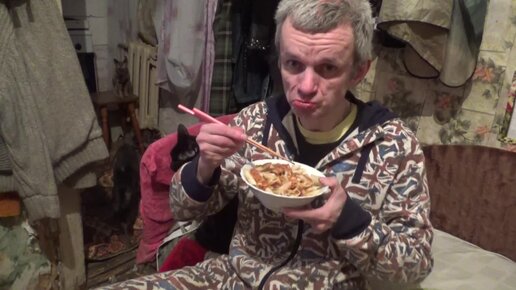 мукбанг обжор макароны с тушёнкой и чай