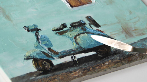Как нарисовать старый скутер. Картина маслом. Пейзаж. Мастихин