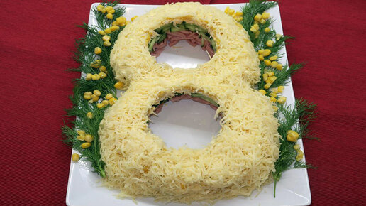 Салат на 8 Марта. Праздничный слоеный салат с ветчиной и сыром