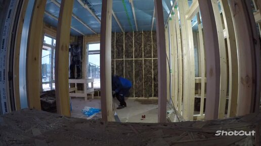 Сегодня был очень насыщенный день. Утепление чердачного перекрытия эковатой, утепление наружных стен и монтаж обрешётки под фасад.