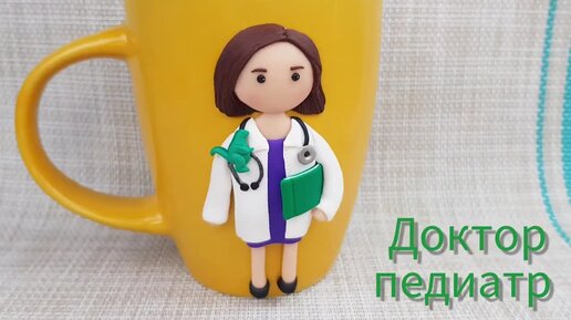 Чашка подарок доктору педиатру. Фигурка врач на подарочной кружке из полимерной глины AnneAlArt