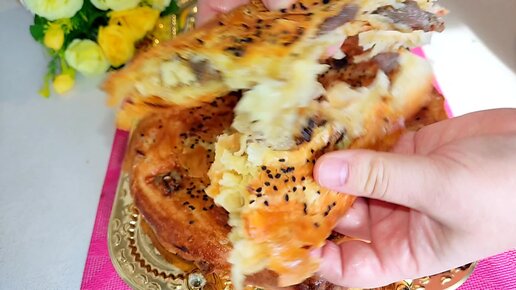 Обалденная лепешка в духовке , катлама с мясом даже остыть не успеет