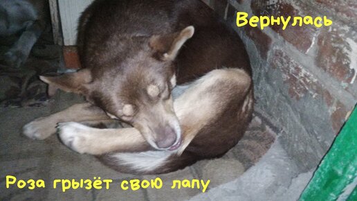 РОЗА ГРЫЗЁТ свою лапу/ВЕРНУЛАСЬ Собака роза 🙂