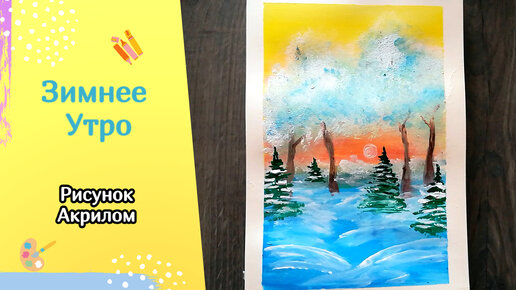 Как нарисовать ЗИМНЕЕ УТРО просто | Как нарисовать зимний пейзаж