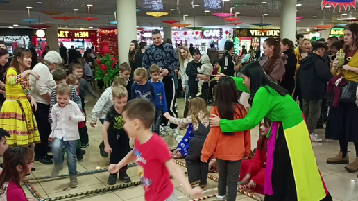 Дети играли во вьетнамскую игру с палками на празднике Тет, который состоялся в г. Москве, в МФК "Ханой-Москва"