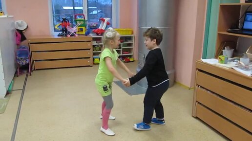 Танцы в детском саду, мальчик и девочка, сами решили потанцевать, а получился вальс