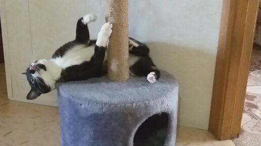 Смешной, весёлый котик. Танцор на шесте.