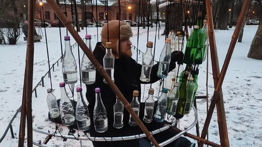 Замечательный уличный музыкант Фёдор Григорьев в Александровском парке показывает своё мастерство игры на бутылофоне - это музыка в стекле!)