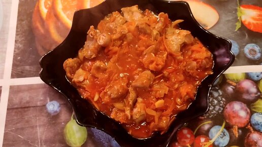 Куриные желудочки в томатном соусе. Все ищут их на столе.