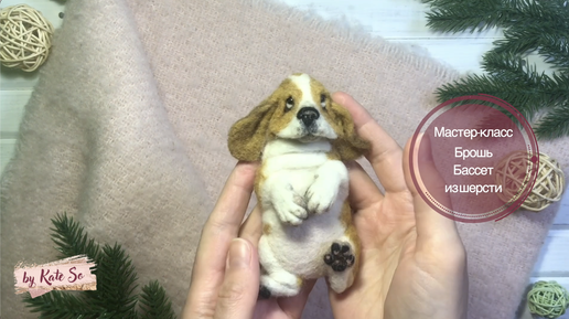 Брошь из шерсти, сухое валяние. Бассетхаунд