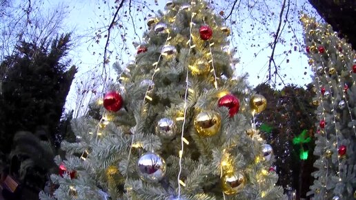 Тёплый зимний Сочи: кошка под ёлками, сквер у к/з «Фестивальный», первоцветы на клумбах курорта