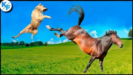 ЛОШАДЬ В ДЕЛЕ. Лошадь против людей, быка, собак, крокодила. Битвы лошадей снятые на камеру.