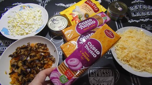 Рыбный пирог из тунца крекеров и грибов. #пирог