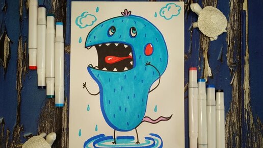 МОНСТРИКИ.Монстрик похожий на голубую грушу. Поэтапное рисование для детей.+ПРИЗ ЗА 7 РИСУНКОВ.