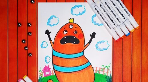 Дети рисуют. Детский рисунок -Убегающий монстрик фасолинка.+ПОДАРОК ЗА 7 РИСУНКОВ.