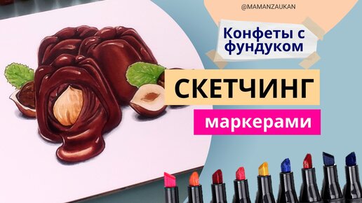 Шоколадные конфеты с кремовой начинкой и фундуком. Фудскетчинг маркерами для начинающих