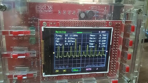 Сравнение осциллографа С1-49 и DS0138 при сигнале 105 кГц, 25% на затворе IGBT после драйвера IR2153