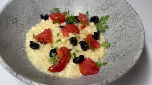 Рецепт птитима с печеными томатами и вялеными оливками от шеф-повара Александра Богданова