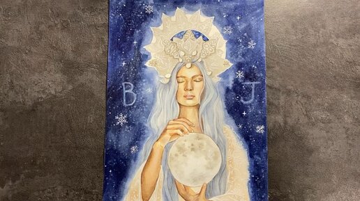 Старший Аркан Верховная Жрица. Значение карты. Колода Таро Волшебной Зимы #таро #тароонлайн #акварель #портрет #колодатаро