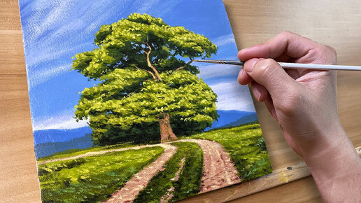 Рисуем Большое дерево. Мастер-класс по Живописи акрилом. Картина на холсте