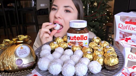 МУКБАНГ сладости Рафаэлло и Ферреро! Распаковка огромной конфеты Raffaello Ferrero rocher mukbang