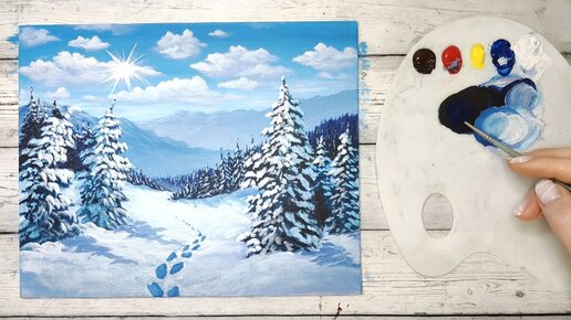 Как легко нарисовать солнце в горах акриловыми красками☀️🏔️🎨 Пошаговое видео🎥