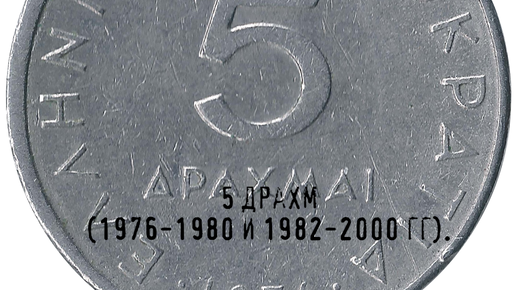 Греческая Республика. 5 драхм (1976-1980 и 1982-2000 гг).