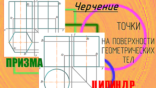 Проекции точек на поверхности геометрических тел. Часть 1. Призма и цилиндр