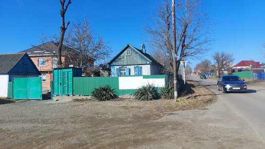 Ставропольский край. Кочубеевский район. Просто обилие домов из белого кирпича и сине-зеленых заборов.