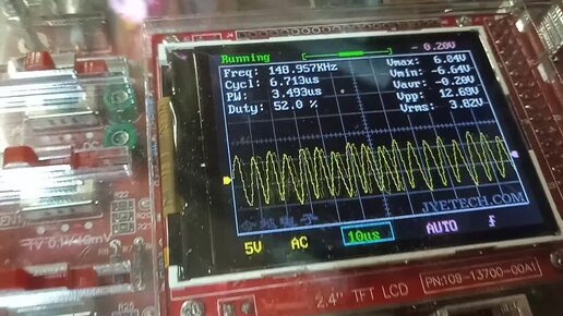 Обзор осциллографа DS0138. Простые тесты с генератором меандра до 150 кГц с рег. длит. имп. Часть 1