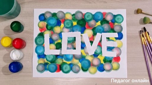 Рисунок на День влюбленных. Надпись Love. Рисуем молярной лентой и губкой