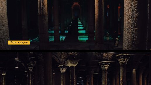 🚸 Некоторые сцены из к/ф "Инферно", так же снимали в знаменитой Цистерне Базилика. Для сравнения сверху кадры снятые мной, снизу из фильма. #стамбул #стамбул #путешествие #кино