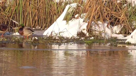 Утки кряквы зимой на не замерзшей речке