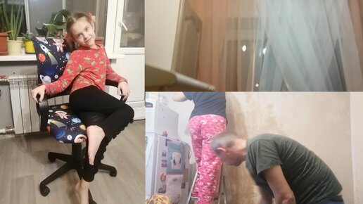 САША САМА СОБИРАЕТ КРЕСЛО😱ПОКЛЕИЛИ ОБОИ НА КУХНЕ🥳 ПОВЕСИЛИ НОВЫЕ ШТОРЫ/УБОРКА В КВАРТИРЕ