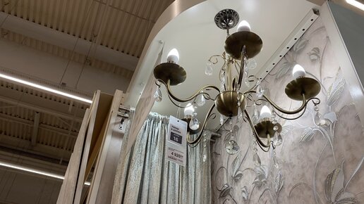 Леруа Мерлен. Пример сочетания обои-шторы-люстра. Обзор инсталляции, созданной дизайнерами