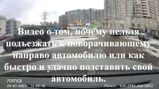 Видео о том, почему нельзя подъезжать к поворачивающему направо автомобилю или как быстро и удачно подставить свой автомобиль.